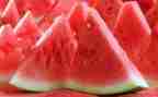 小朋友们说的很对,没有切开的西瓜是圆形、绿色的,被切开的西瓜有半圆形、三角形等,切开后的西瓜瓤是红色的,上面还有黑色的西瓜籽。(要出示有圆形、半圆形、三角形的的图片)